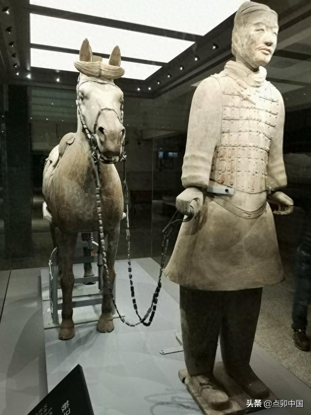 骑兵鞍马俑出土于骑兵阵,为研究秦国骑兵的装束、鞍马的装备提供了形象的资料。他的装备,马鞍子和马络头与我们现在的一样,但和今天马的装备相比缺少马镫。马镫是500年之后,西晋时期才出现的。如果你看秦朝的影视剧,看到马镫,就可以骂编剧和导游不懂历史了。