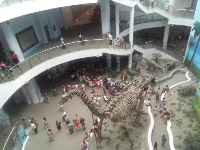 通过这个图片就可以看出它的特别(它刚进门就是从外面往上走,而不像其他的平坦进入)。这里面有很多真贵的古生物化石,比如辽宁大型恐龙、花的化石等。
