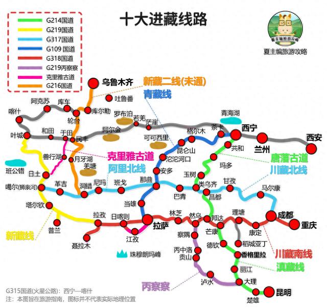 线路走势:青甘大环线全程3200公里,自驾需用时7-10天。西宁出发,先后沿109国道青藏线、315国道火星公路一路西行,翻越青甘两省交界的当金山垭口后,一路沿着古丝绸之路、G30连霍高速回程,经祁连、门源回到西宁。