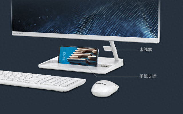 屏幕为23.8英寸,FHD分辨率,72% NTSC色域,带有手机支架,标配无线鼠标和键盘。同时支持WiFi 6和蓝牙,保障速度。